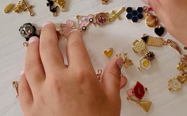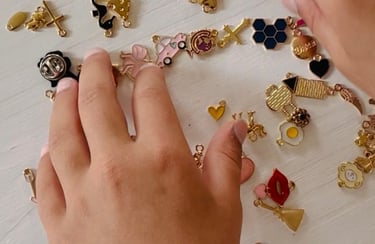 Finalement, chacune va pouvoir réaliser des élastiques pour leur cheveux de sirène et un bracelet en chaine dorée en choisisant leurs charms préférés ainsi que les initiales de leur prénom.