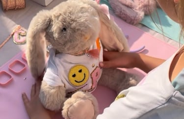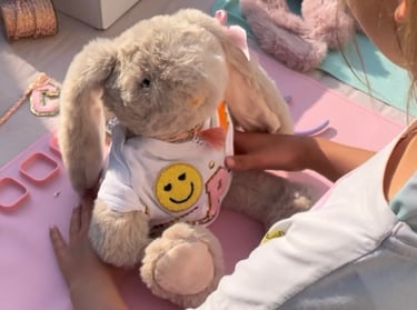 Ensuite ils pourront personnaliser son T-Shirt à l'aide de lettre, d'écussons, de strass et de feutre. Ils vont ensuite lui faire son collier avec son prénom en perle ainsi que des bracelets. Les enfants créeront finalement leur bic pompon pour compléter le passeport du doudou.