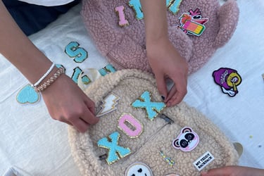 Chaque invité pourra personnaliser un sac à dos* avec les initiales de son nom, avec des écussons et des pins en tout genre.