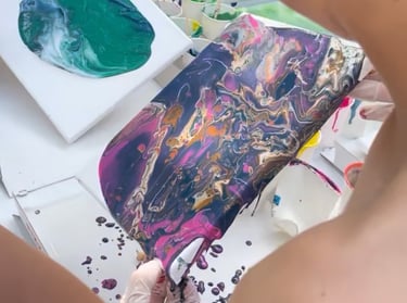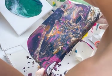 L'art fluide est à la mode en ce moment. Chaque invité créera sa toile d'art moderne en apprenant la technique du pouring.