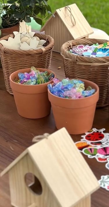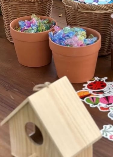 Les enfants pourront chacun choisir et personnaliser un adorable petite nichoir d'oiseau * à l'aide de stickers, de gliters, de paillette et de peinture.
