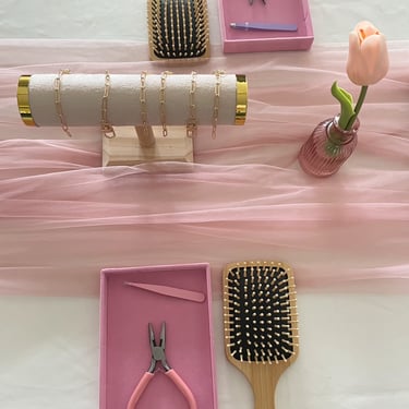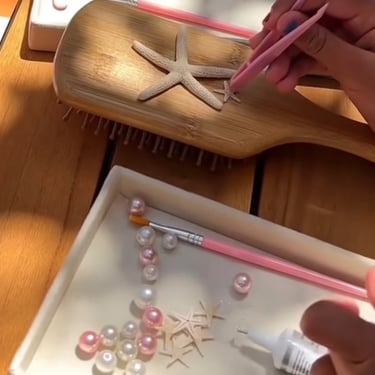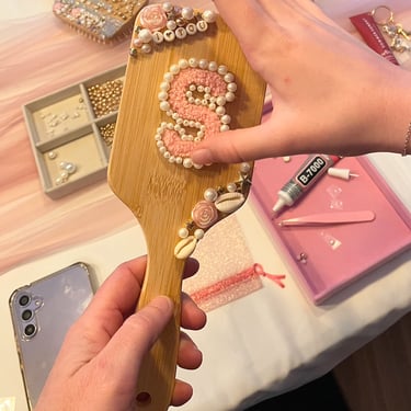 Elles vont ensuite personnaliser une jolie brosse à cheveux en bois avec des perles, des coquillages ou des strass (dépendant du thème de l'anniversaire et des saisons).