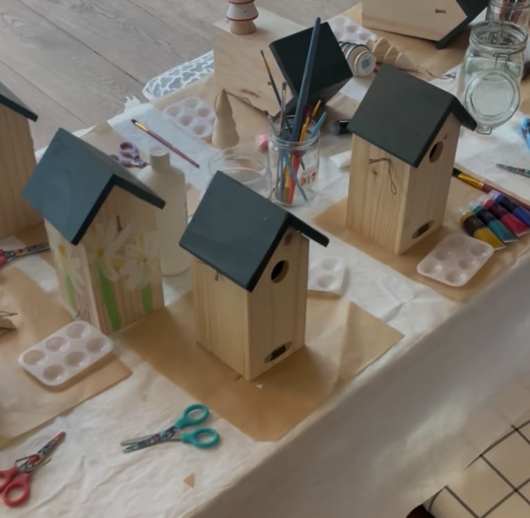 Les enfants pourront chacun choisir et personnaliser un adorable petite nichoir d'oiseau ou vase de fleur * à l'aide de stickers, de gliters, de paillette et de peinture.