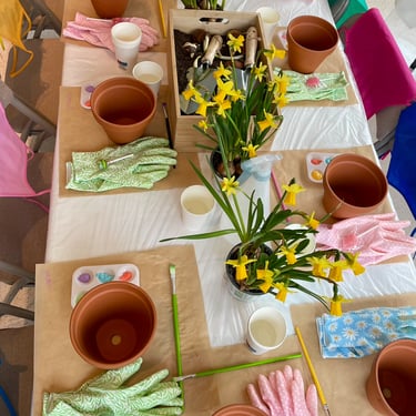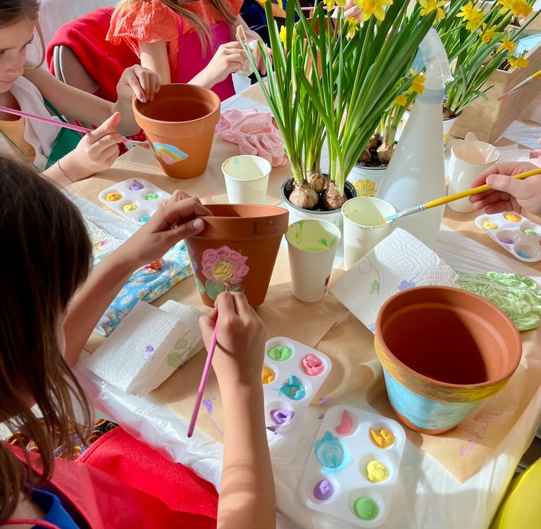 Chaque enfant pourra peindre et décorer son propre pot de fleurs, en y ajoutant sa touche personnelle grâce à divers matériaux. Une fois son pot prêt, il le remplira de terre et y plantera une fleur, créant ainsi un magnifique souvenir vivant à emporter.