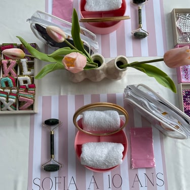 L'atelier commence par un petit rituel de soin, dans une ambiance calme et apaisante. Chaque participante reçevra son bandeau spa, un petit miroir et une serviette humidifiée pour préparer sa peau. Les enfants vont apprendre à nettoyer leur visage avec une mousse lavante douce, puis vont découvrir les gestes de massage relaxant avec un rouleau en pierre de jade. Pour terminer ce moment de soin, elles vont s'appliquer une crème de jour hydratante pour peau douce et lumineuse.