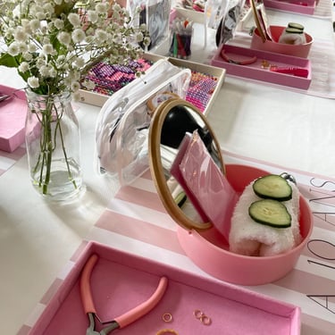 Chaque enfant reçevra une jolie trousse transparente de spa qu'elles pourront personnaliser avec ses initiales pour créer leur kit de beauté unique.