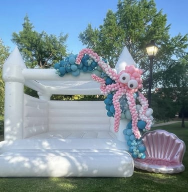 Nous vous proposons également une décoration de ballons autour du château, personnalisée selon le thème de l'anniversaire, pour une ambiance encore plus festive