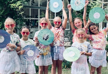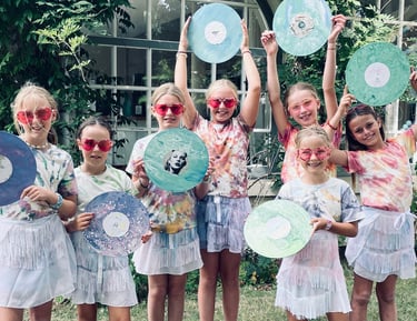 Mardi peinture : customisation d'un vinyle avec la technique de la peinture pouding + atelier tie due au couleur de ses albums