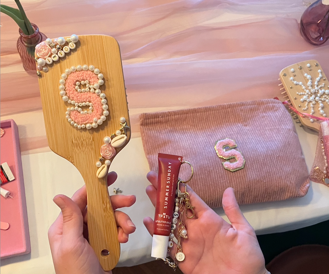 Lors de cet atelier, chaque invitée va pouvoir personnaliser une jolie trousse de toilette ou un tote bag* avec la 1ere lettre de leur prénom.