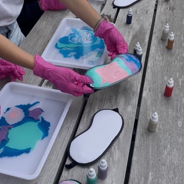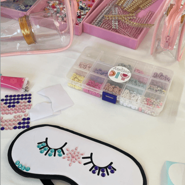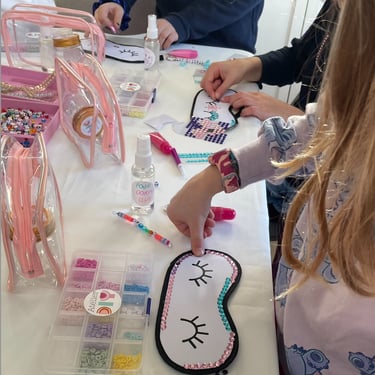 Lors de cet atelier, les filles vont personnaliser leur masque de sommeil en apprenant la technique de la peinture marbrée ou à l'aide de strass et de paillettes. Elles vont ensuite créer leur brume d'oreiller à pierre énergétique et un porte clés gloss*.